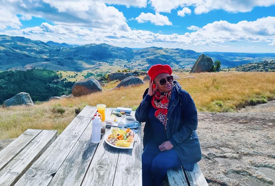 In 2020, before anyone knew the world would soon shut down, Thabile made a simple New Year’s resolution: “I want to explore this country. I want to be intentional about it. I want to explore Eswatini, KZN, and Mpumalanga..” She had visited three local places when the borders closed. The last one being Sultan Spiritual Retreat – a rustic, off-the-grid Turkish-Swazi fusion eco-lodge deep in the hills of Nkhaba, rich with Persian rugs, chandelier lighting, rondavel and grotto-style rooms with cement-slab beds. A sweet contrast of Turkish culture – Turkish bath and all – and preserved rural living with no electricity, minimal connectivity, water harvesting, and garden-to-table vegetarian meals freshly prepared on the proverbial welcome dover stove. A place she described as “an antidote to urban living, but not for everyone. I loved it.”