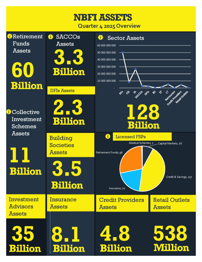The Non-Bank Financial Institutions (NBFI) sector in Eswatini has demonstrated remarkable scale and stability, with total sector assets reaching a staggering E128 billion as of the end of the fourth quarter of 2025, according to the Q4 2025 Quarterly Statistical Bulletin by the Financial Services Regulatory Authority (FSRA).