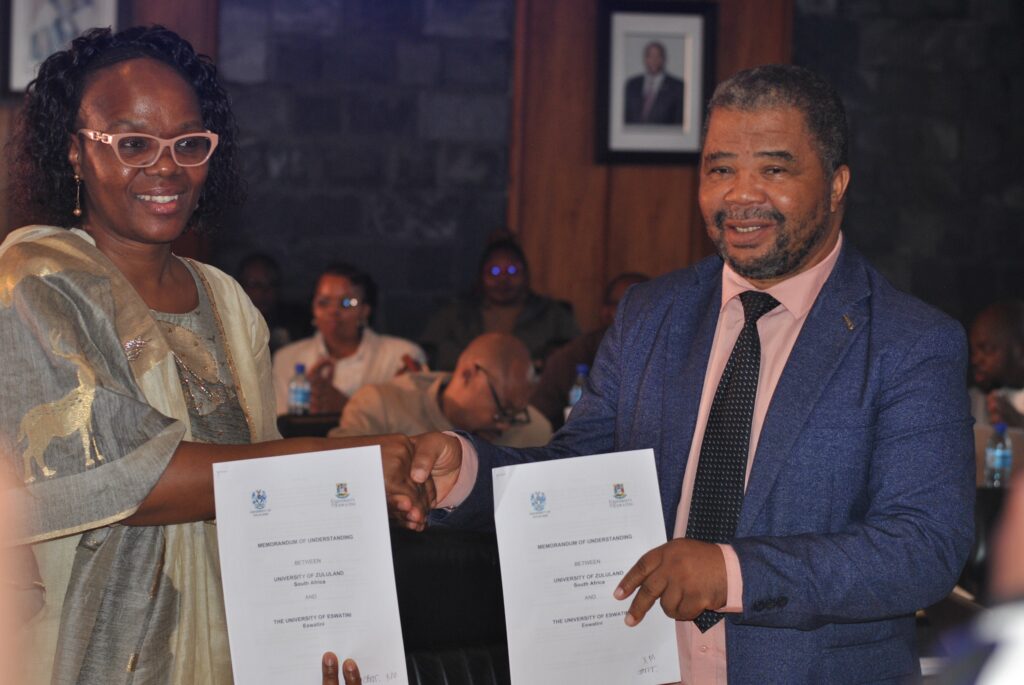 The University of Eswatini (UNESWA) and the University of Zululand (UNIZULU) have signed a Memorandum of Understanding (MoU), formalising a strategic academic partnership aimed at strengthening regional collaboration in higher education, research, and innovation.